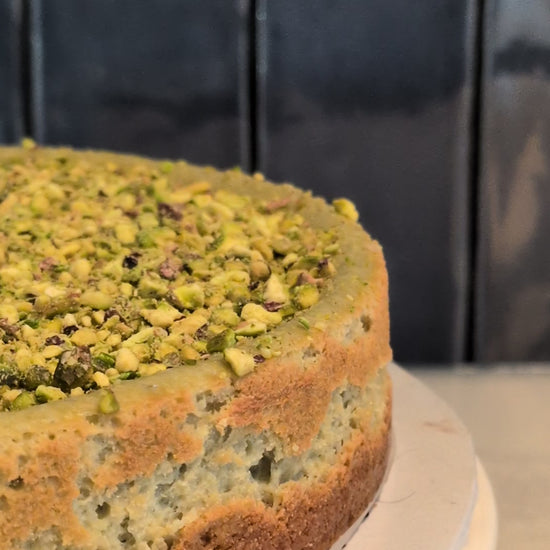 Our signature New York–style cheesecake meets premium Italian Pistachio Cream (crema di pistacchio) for a rich, nutty flavor and a naturally green crumb. Baked low and slow for a silky set, then topped with chopped pistachios for crunch in every bite.